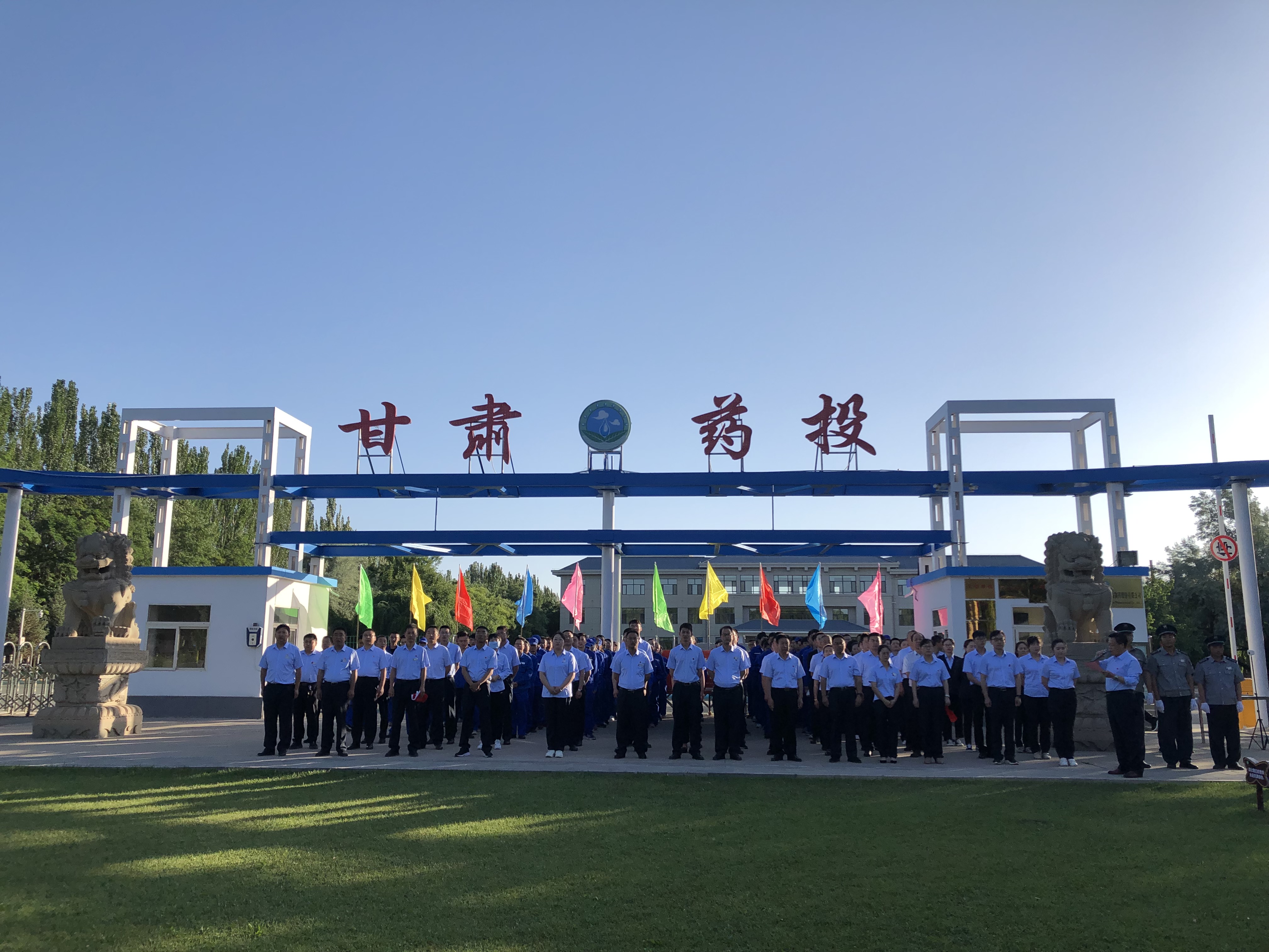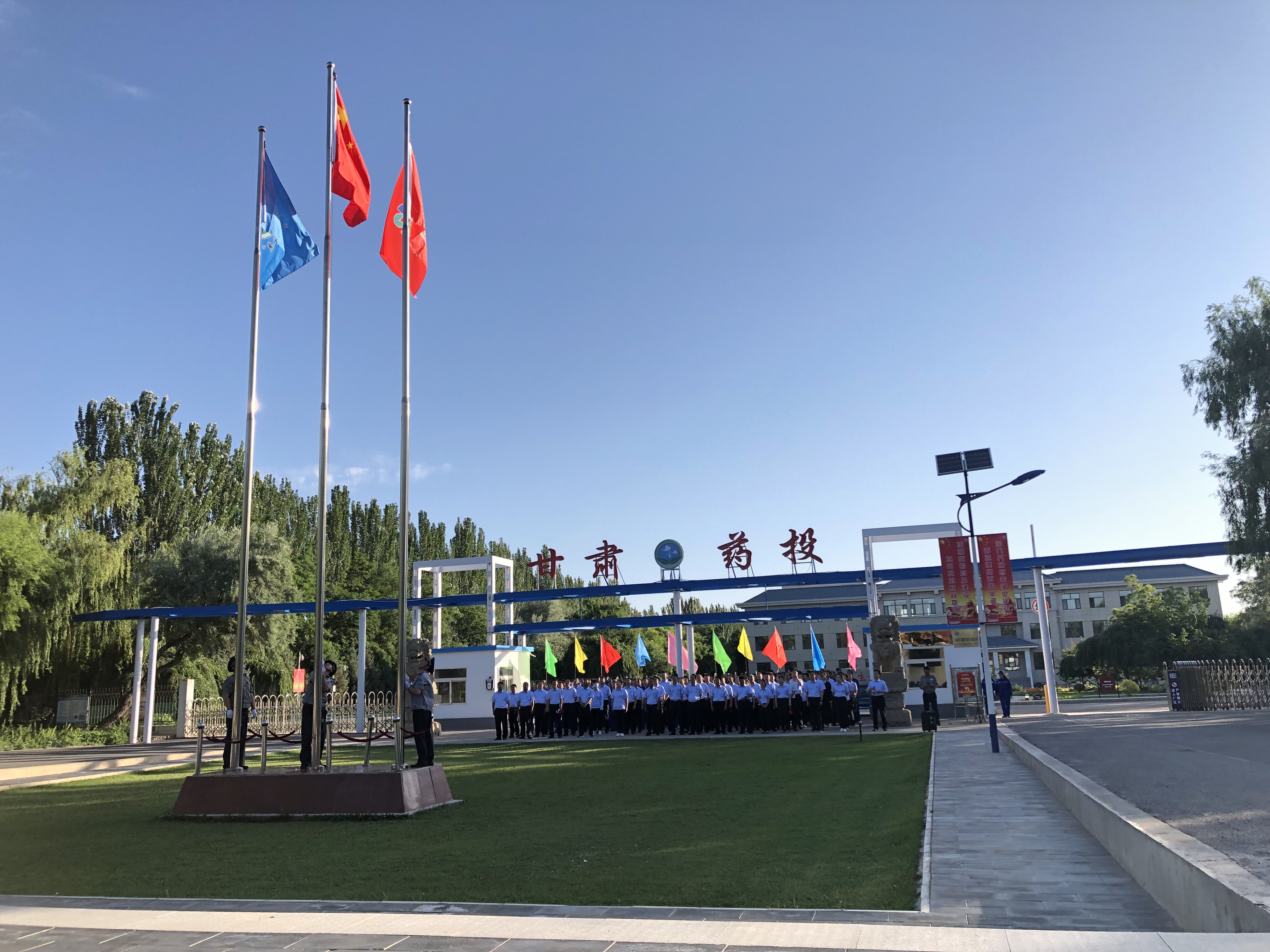 7月1日早7點(diǎn)15分,迎著初升的朝陽,甘肅普安制藥股份有限公司在廠區(qū)大門口前舉行了升國旗與重溫入黨誓詞儀式。