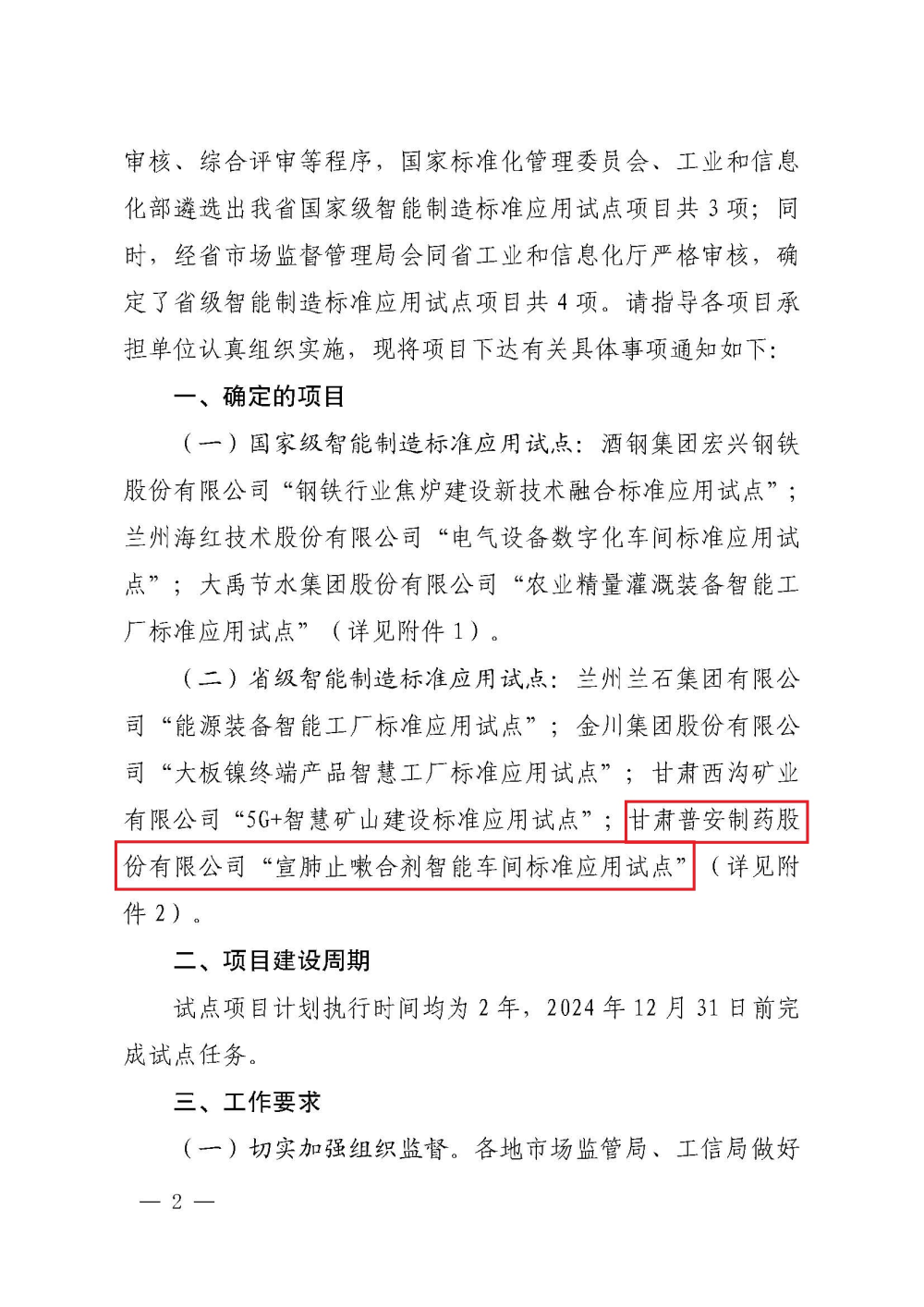 “三抓三促”踐行中 ᅵ 【喜報】甘肅藥業集團普安制藥入選省級智能制造標準應用試點項目名單