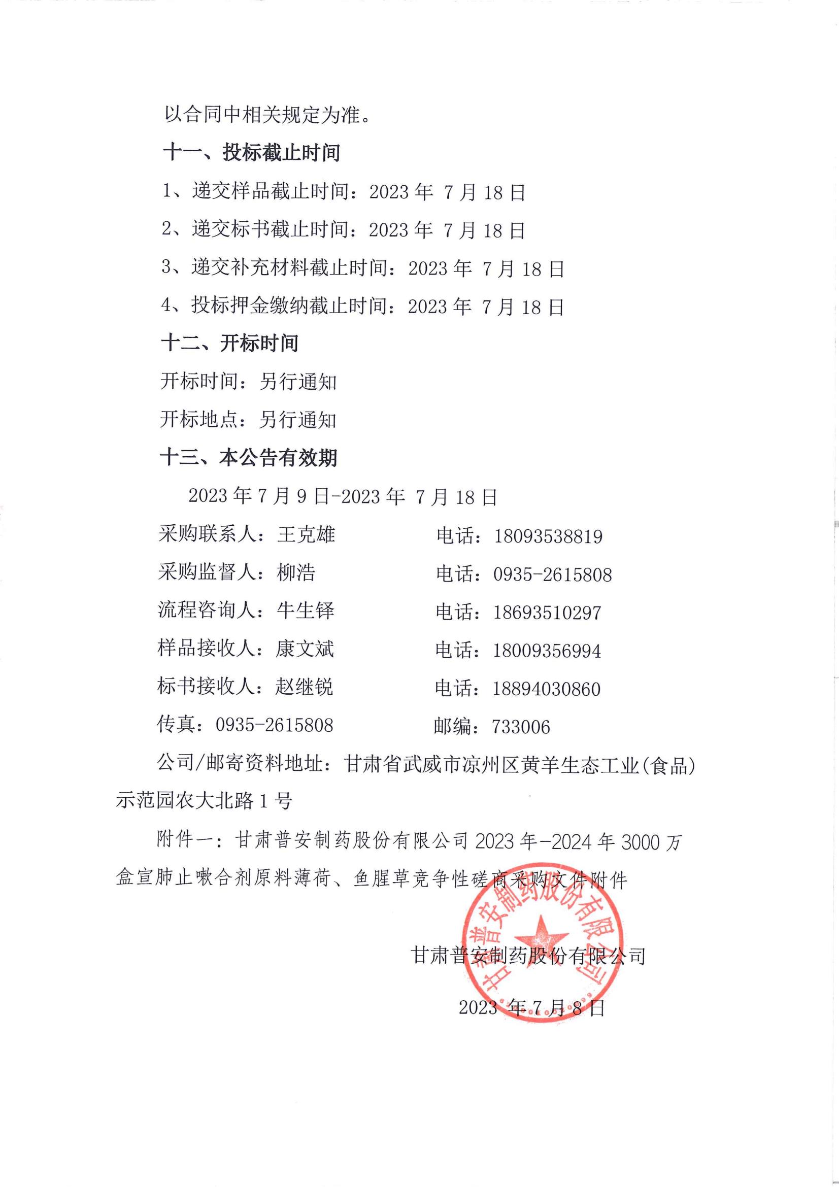 甘肅普安制藥股份有限公司2023年—2024年3000萬盒宣肺止嗽合劑原料薄荷、魚腥草采購競爭性磋商公告